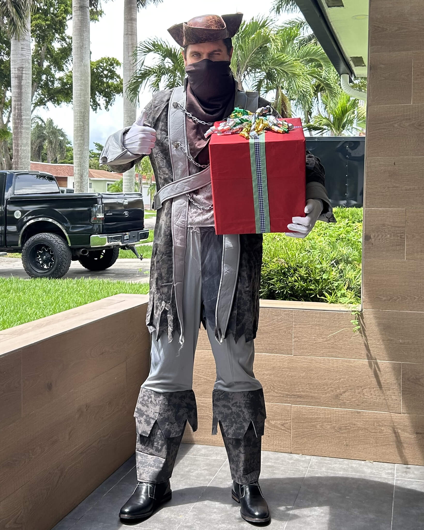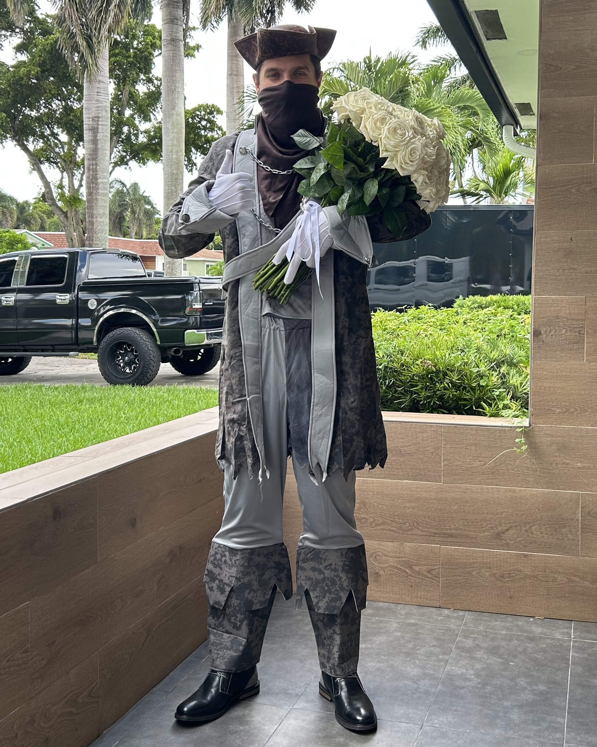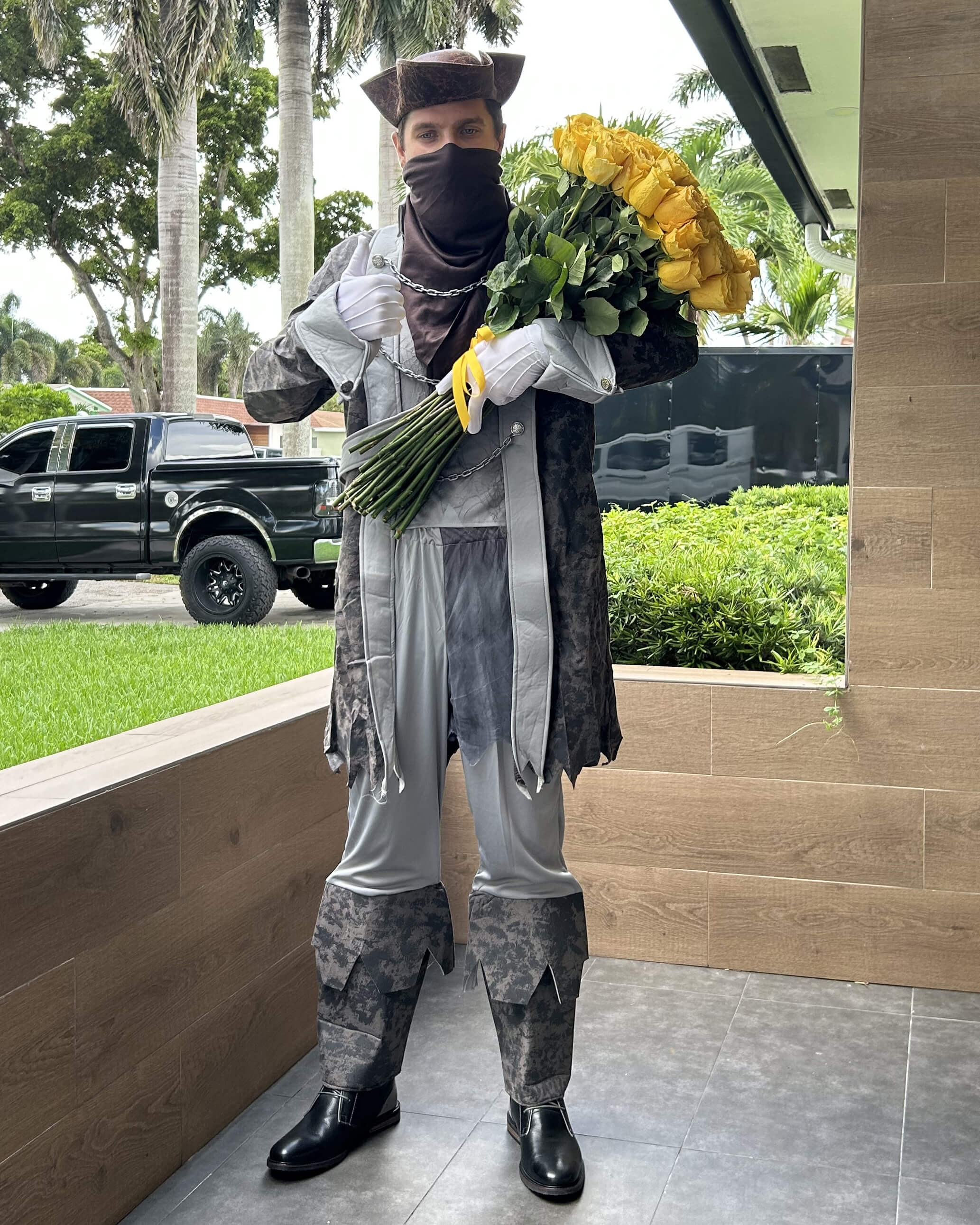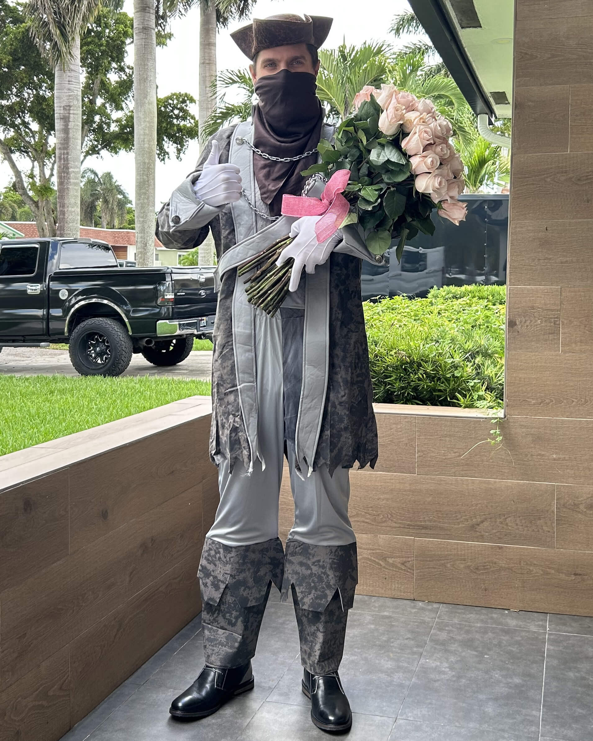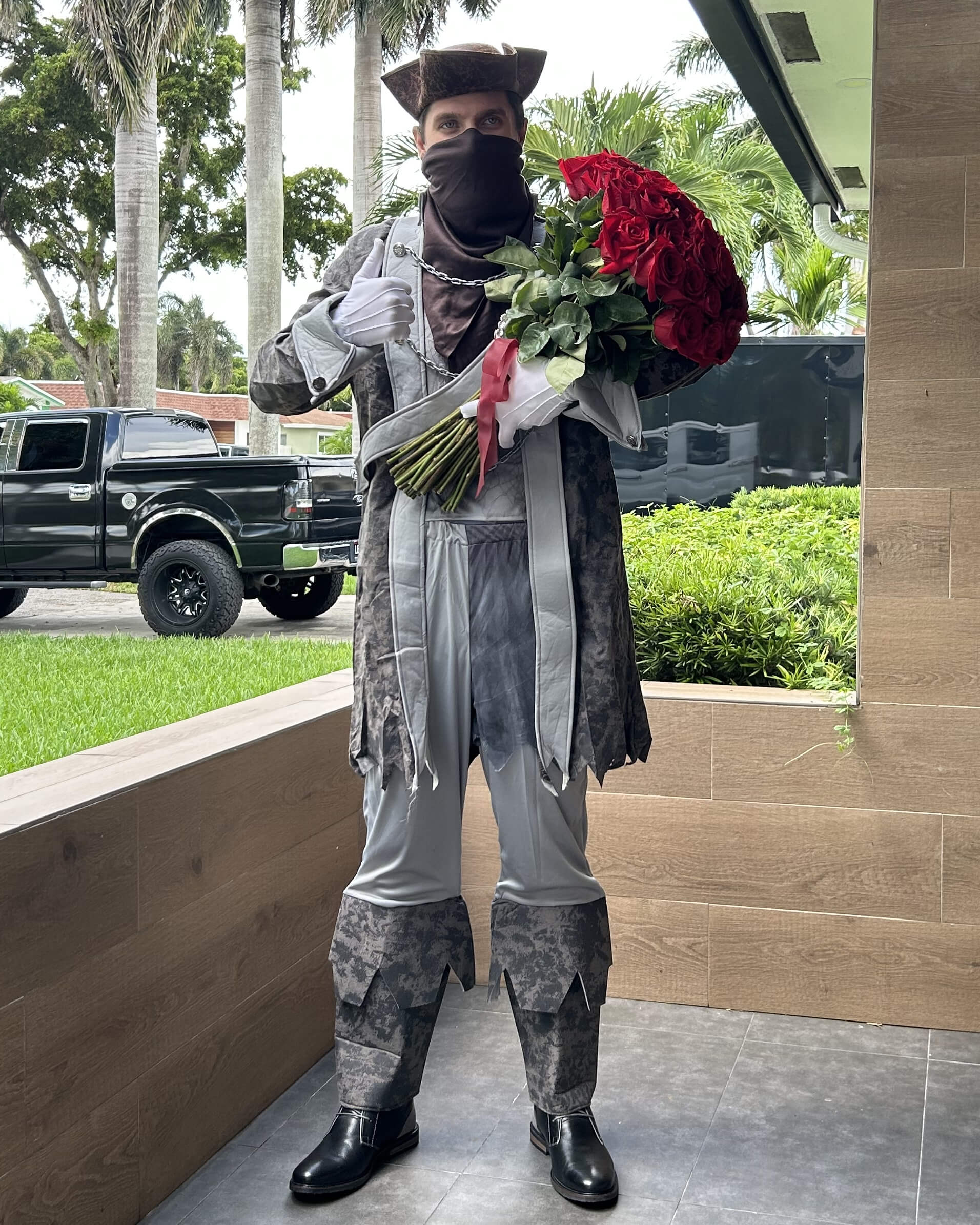 Delivery of fresh roses by a charismatic master of the Caribbean Sea